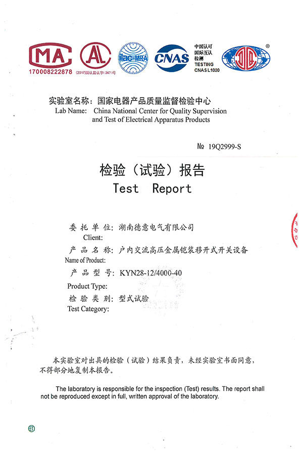 KYN28-12/4000-40KA型型式試驗(yàn)報(bào)告