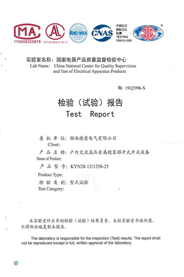 KYN28-12/1250-25KA型型式試驗(yàn)報(bào)告