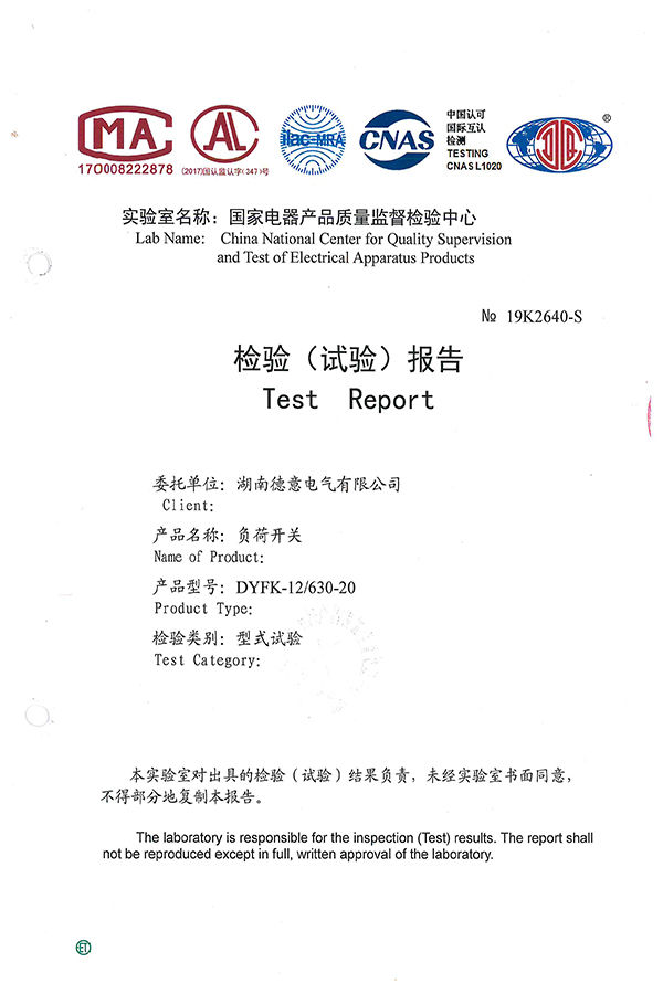 DYFK-12/630-20負荷開關(guān)試驗報告